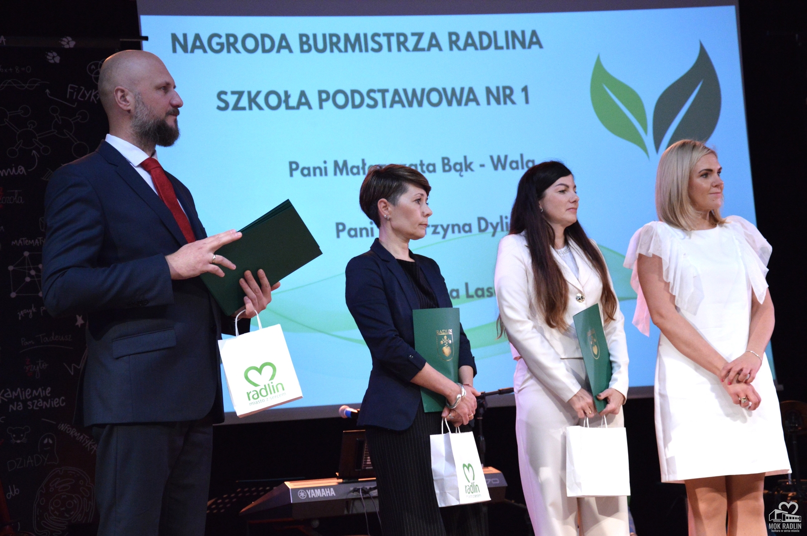 Na uroczystej akademii zorganizowanej w Miejskim Ośrodku Kultury w Radlinie Nagrodę Burmistrza Miasta Radlina z rąk Pana Zbigniewa Podleśnego odebrali pani Małgorzata Bąk – Wala, pani Katarzyna Dylich oraz pani Joanna Lasek.