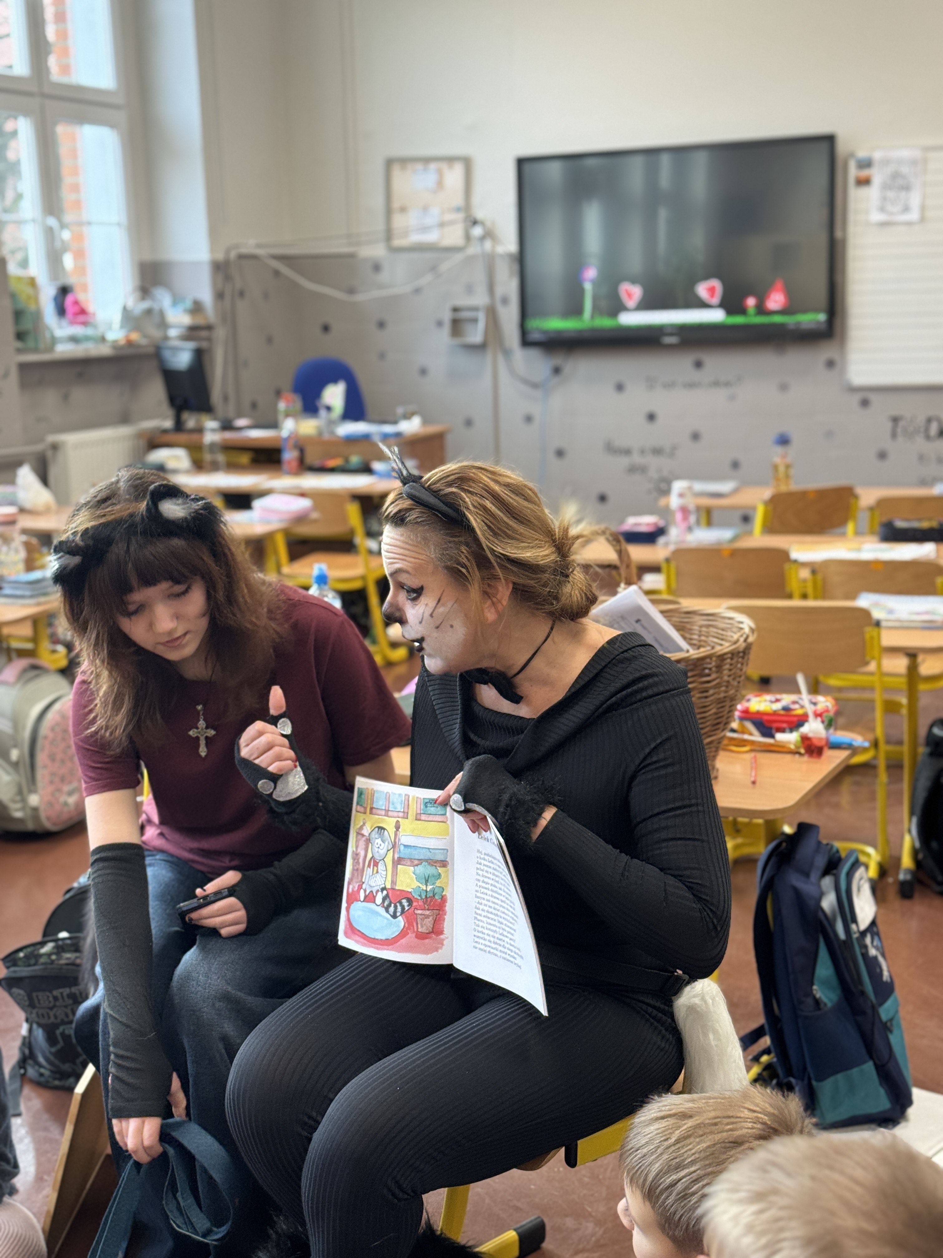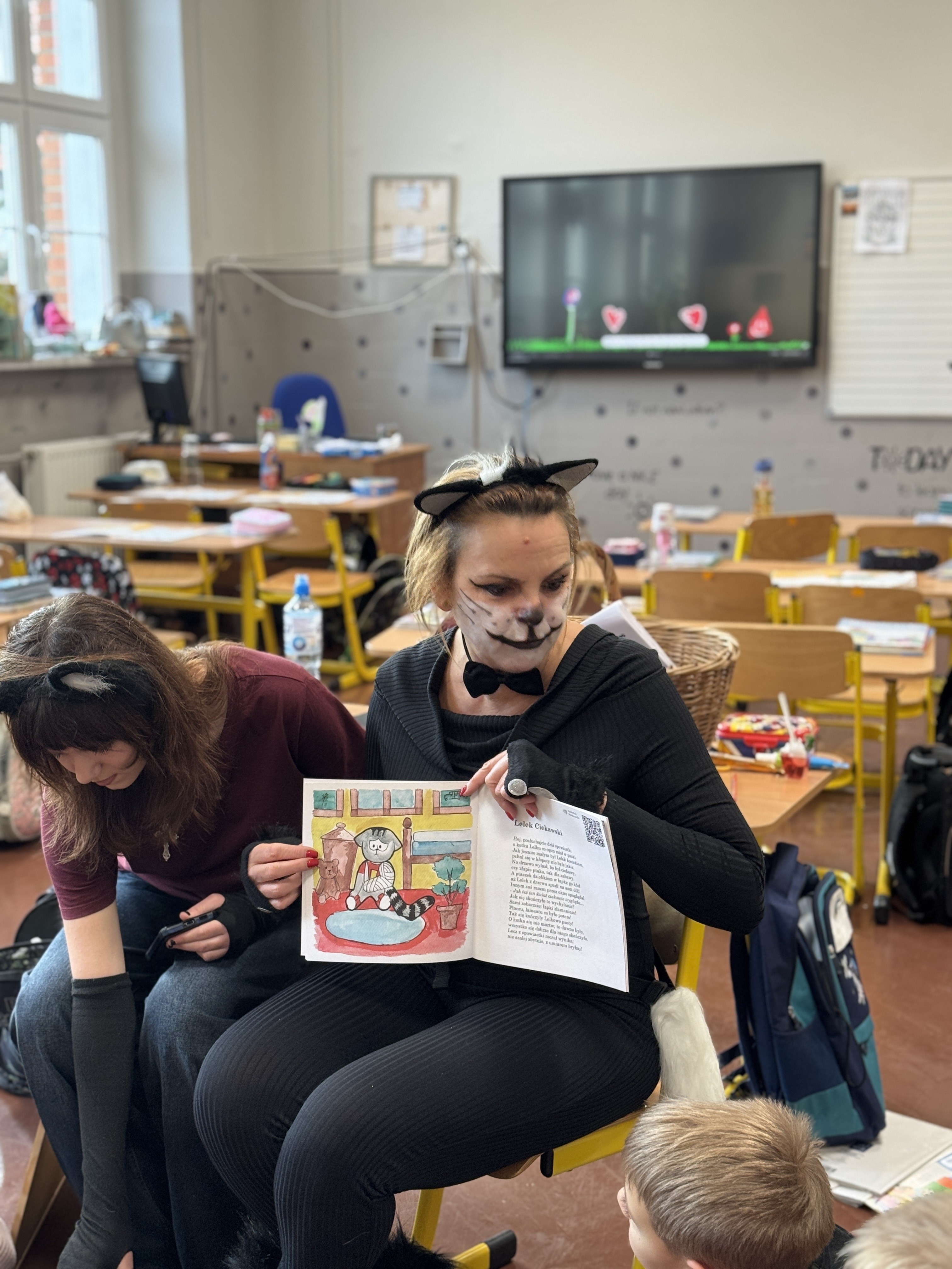 Spotkanie było pełne śmiechu, ciekawostek o naszej śląskiej mowie i wspólnego czytania. Dzieci z wielkim zainteresowaniem słuchały opowieści o tym wyjątkowym kocie, a pani Joanna, Bajkotka – rymowanki z pazurem pięknie pokazała, jak ważne i fajne może być pielęgnowanie naszej regionalnej mowy.