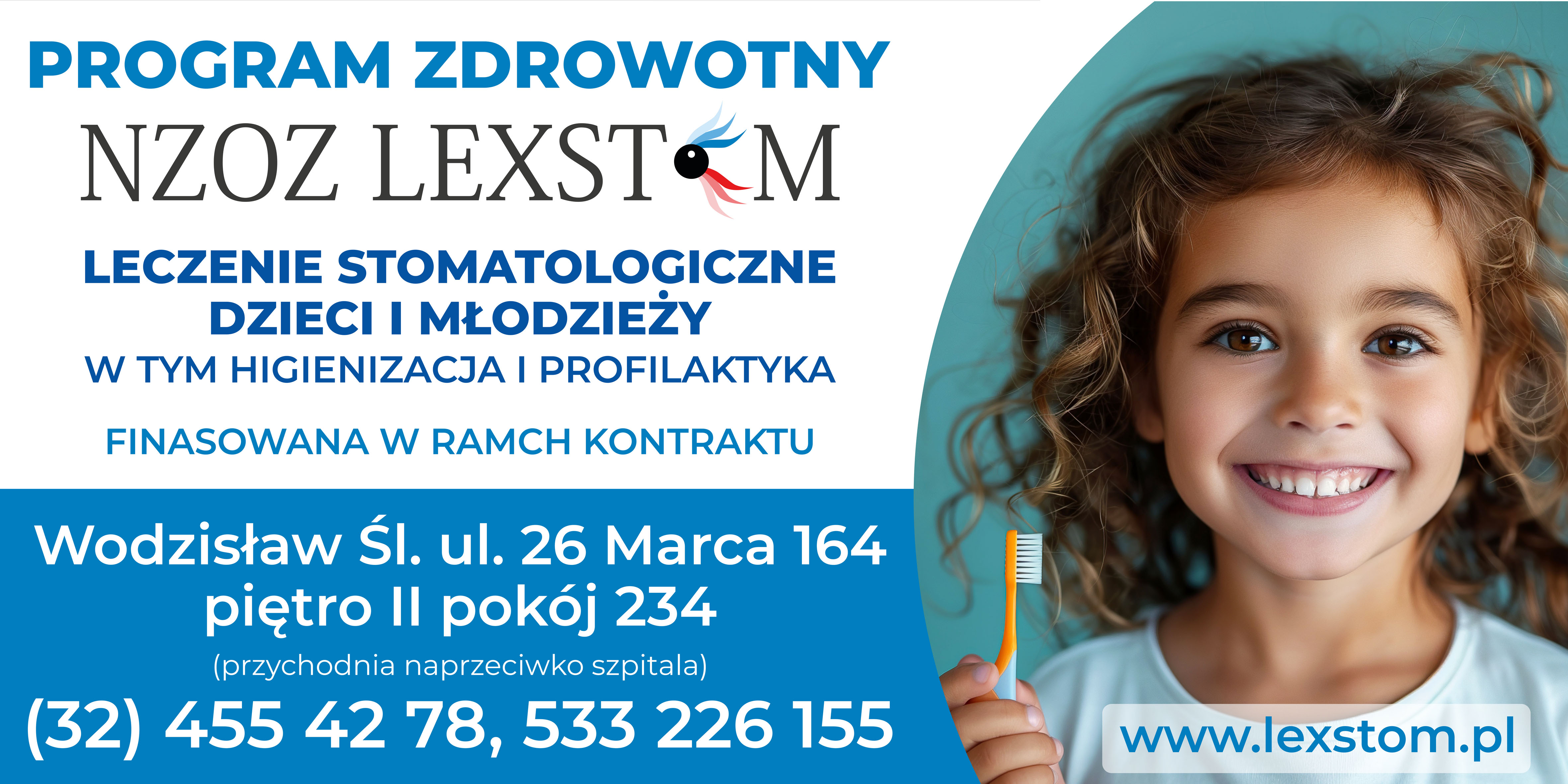 W związku z powyższym chcielibyśmy przypomnieć, że nasza szkoła ma podpisane Porozumienie z NZOZ Lexstom z Wodzisławia Śląskiego w sprawie leczenia stomatologicznego dzieci i młodzieży, w tym profilaktyki i higieny jamy ustnej, finansowanej w ramach kontraktu z NFZ.